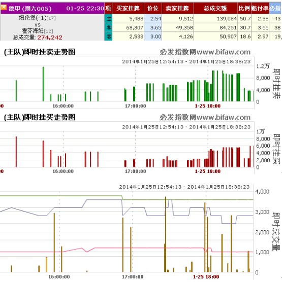 必发交易数据显示主队成交比例较高,在下午时段挂卖一直强于挂买,并且未产生突破性质的成交量。对主队开得较深的盘面形成支撑。