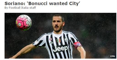 近日,《意大利足球》报道,英超曼城俱乐部与尤文后防核心博努奇联系在了一起,蓝月亮打算将博努奇尽快带到英超。不过,曼城CEO索里亚诺却放出大料,声称是博努奇主动联系曼城方面,打算投奔瓜迪奥拉账下,而非俱乐部主动挖角。