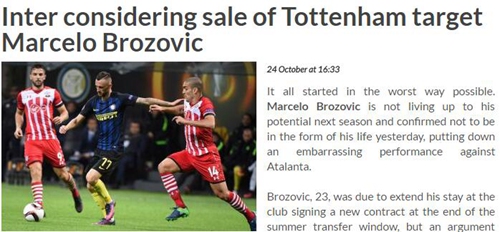 当然,国米还是不会将布罗佐维奇卖给尤文,而是会选择将其出卖给国外俱乐部。根据英国媒体的消息,英超劲旅热刺对布罗佐维奇十分欣赏,该队会在冬窗为克罗地亚人开出2000万欧元的转会费。