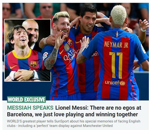 当被问到在巴萨生涯所经历最难忘的一场比赛时,梅西将2009年和2011年两次面对曼联的欧冠决赛列入其中。此外,梅西还强调巴萨之所以一直以来都保持高水平,主要在于队内团结的氛围,“我们是一个整体,我们共同努力赢球,队内任何人都不会以自我为中心。当足球在我们脚下运转时,我们都会非常享受。”梅西还表示自己并不在乎个人荣誉,所有的动力都源于球队和集体,“作为一名球员,我的目标就是赢球,然后赢得奖杯。这和我在国家队的目标是一样的,尽管我们没能赢得一项重大赛事冠军,但我会一直努力下去。”