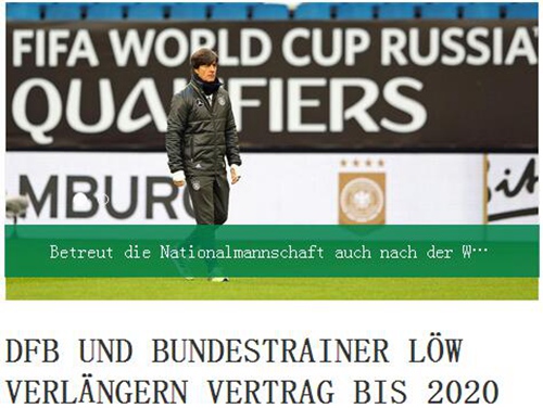 北京时间10月31日晚消息,德国足协官方宣布与国家队主帅勒夫续约至2020年夏天。勒夫此前与德国队的合同将在2018年世界杯之后到期,而在德国足协与勒夫进行协商之后,双方签订了一份新约。在这份新合同中,勒夫的执教时间延长了两年,直到2020年夏天结束。这也意味着德国队功勋主帅将率领德意志战车参加完下届欧洲杯。