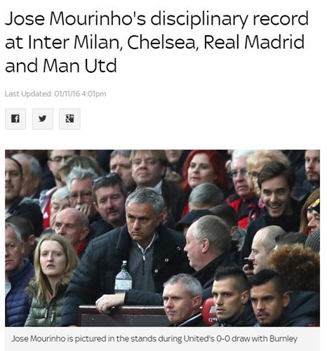 穆里尼奥近期可谓惹事不断,先是在客场战利物浦的新闻发布会上,公开谈论当值主裁泰勒,后又因为战平伯恩利半场赛后与主裁克拉滕伯格发生争执,进而被红牌驱逐。短短一周时间,穆里尼奥就两度违反英足总的铁律,两罪并罚,葡萄牙人极有可能被禁赛4场!而回顾穆里尼奥放荡不羁的执教生涯,挨过的罚单比比皆是,《天空体育》统计表明,魔力鸟从2005年到2016年一共有14次争议言行,处罚总额超过23万英镑,接近人民币200万元。