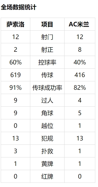 上半时两队总共3次射正(1比2)。下半时开始5分钟,AC米兰扩大比分!博纳文图拉后场长传,苏索右路内切摆脱费拉里,在门前20米处左脚弧线球入远角,2比0!这是他今年2月对阵乌迪内斯之后首粒意甲进球。