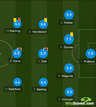 索斯盖特此役变阵4-3-3阵型,这也是检验拉什福德、凯恩和斯特林三叉戟的良机,但是拉什福德的表现无疑拉低了自己在主帅和队友心中的地位。曼联小将全场3次射门,2次单刀吐饼,1次射门脱靶,作为一名进攻球员,如此乏力的射术无疑会成为他的一大软肋。在whoscored网站的赛后评分中,拉什福德获得了6.4的评分,三狮军团中只有斯特林(6.3)比他还要低。