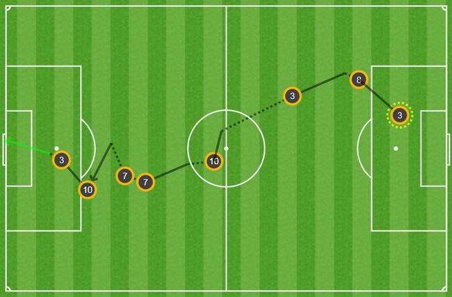 在巴萨奠定胜局后,皮克又开启了进攻模式。第5粒进球就是由他所打进的,而这粒进球的过程也很精彩。后场得球后,皮克组织进攻向前发展,他先与阿图尔做了一个配合,然后在中场把球交给梅西,随后自己继续插上,梅西又与库蒂尼奥相互传球,最后把球塞给禁区内的皮克,皮克扣开防守后推射破门。从本方禁区到对方禁区,皮克完成了全场的奔袭,最后门前的冷静处理更是让很多前锋都汗颜。这也是皮克本赛季的第3粒进球