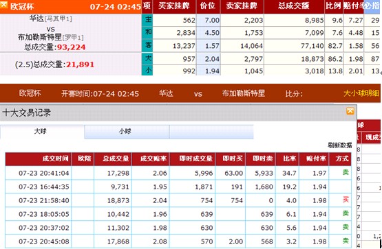 这场比赛的大球成交比例达到86%,相对2.04的赔率来说,相当高,而交易记录显示,大球的前几位成交量以卖为主。这对大球不利。