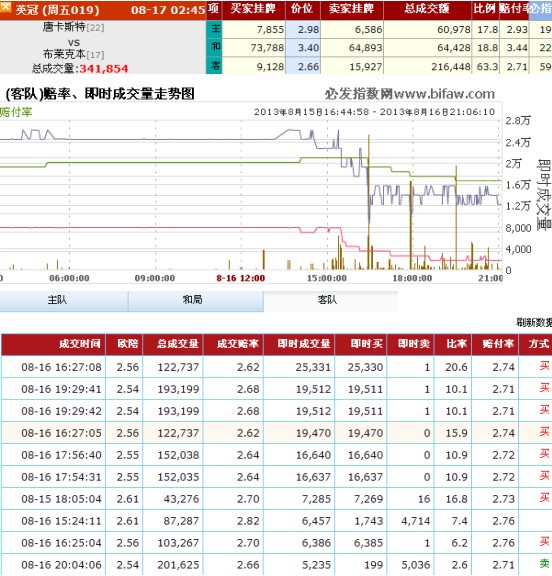 这场比赛已成交的资金量并不出众,似乎没有受到太多主力关注。而客队成交过程中以买入为主,所以客队赔率下跌也可以理解。主队的成交以卖出为主,客队还是值得看好一些。