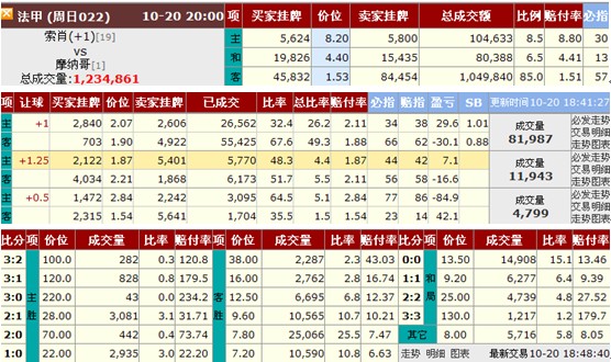 比分成交量也相对活跃,尤其是0:2成交量比较出众。