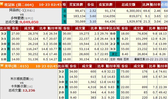 盐城皇马球迷估计阿森纳不败,仅供参考!另:英甲的米尔顿凯恩斯2:1比分成交量极为醒目,有打出的可能,求稳角度看,米尔顿凯恩斯上盘也可以关注。