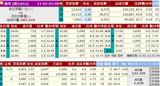 必发标盘:平局挂单与成交都相对活跃,利于下盘;