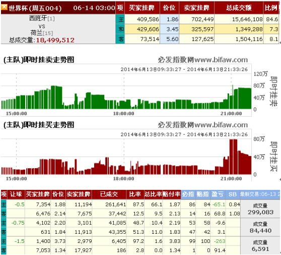 必发亚盘数据显示,西班牙的半球盘成交量29万,这样的成交量在世界杯的赛事中仅是九牛一毛。说明这一盘口并未受到资金追捧。对西班牙不利。
