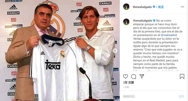 桑斯女婿、前皇马边卫萨尔加多在Ins上发布他与桑斯的多张合影,并附上长帖,“没有皇马球迷会忘记您,我很自豪能成为您的女婿,也是您的球员,尽管按时间顺序是相反