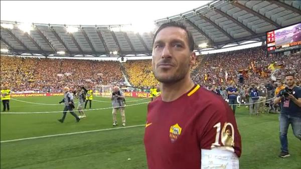 谈到退役时刻,托蒂说:“对我来说,这是特别的不寻常的一天。我从未想过球迷有那样的反应。我把那一刻看得比意甲和世界杯夺冠更重。要找到词语形容那天很困难。看到整个球场的泪水是美妙的,这就是爱,没有人会把它从我们身边夺走。”